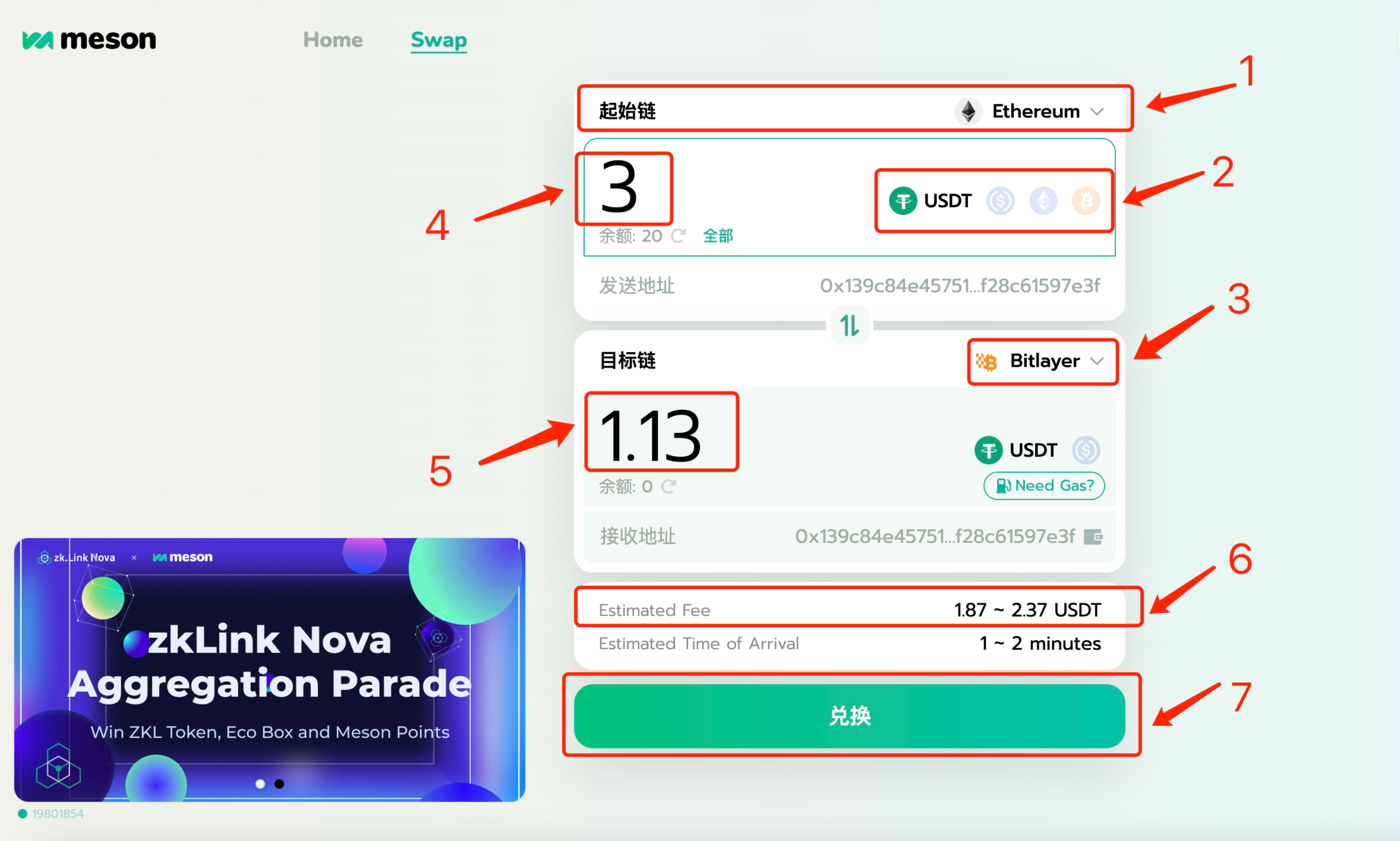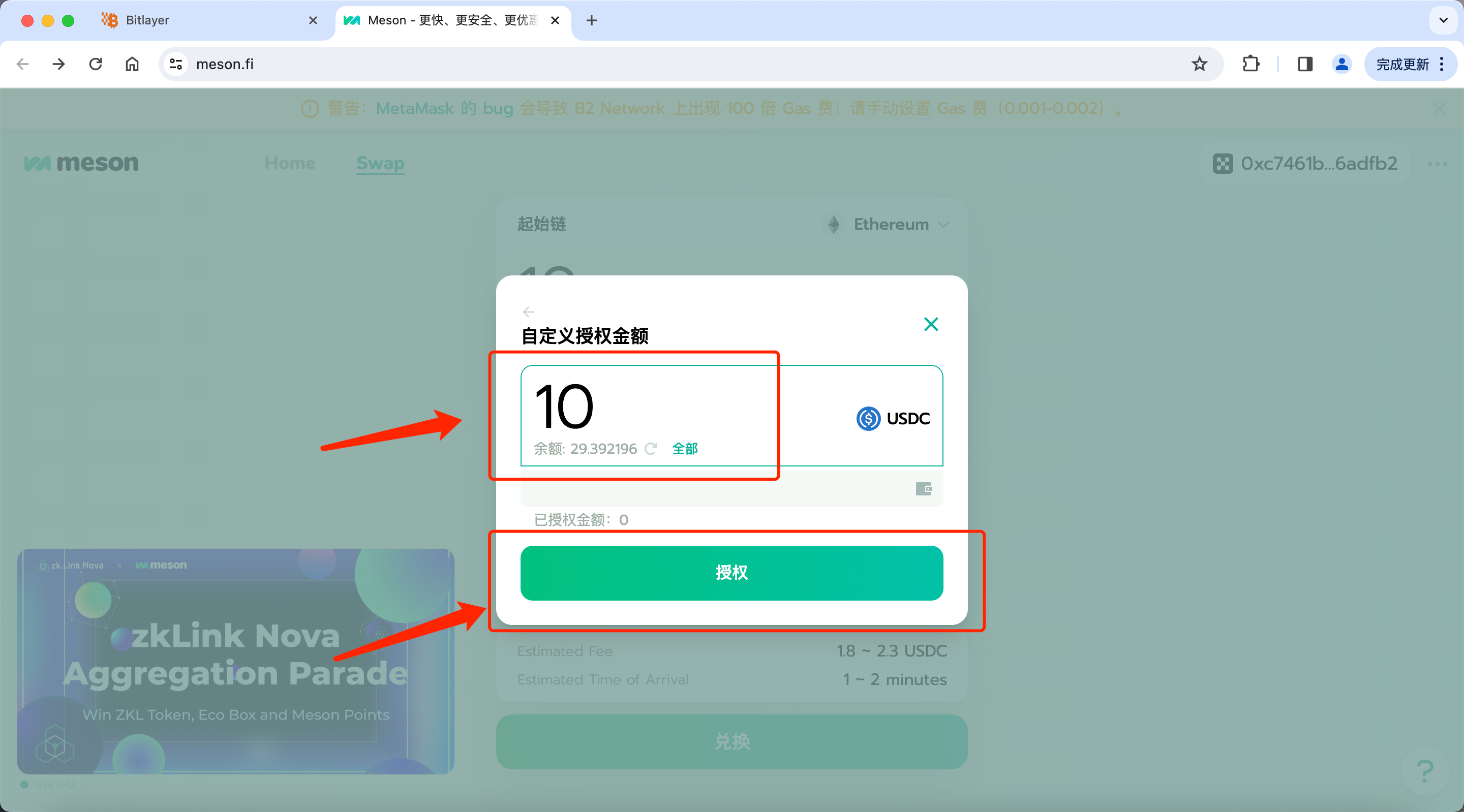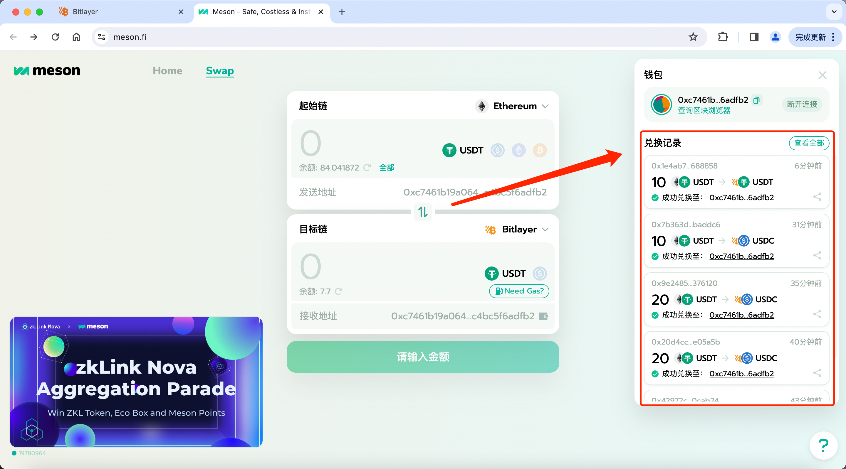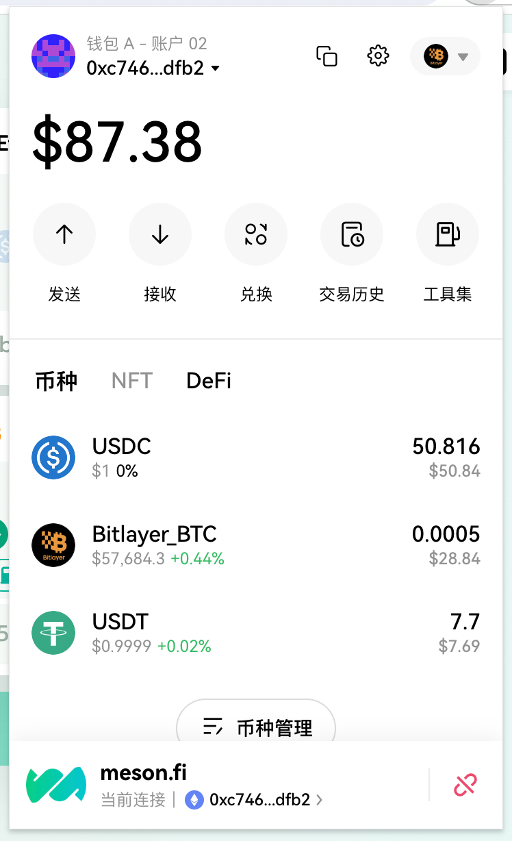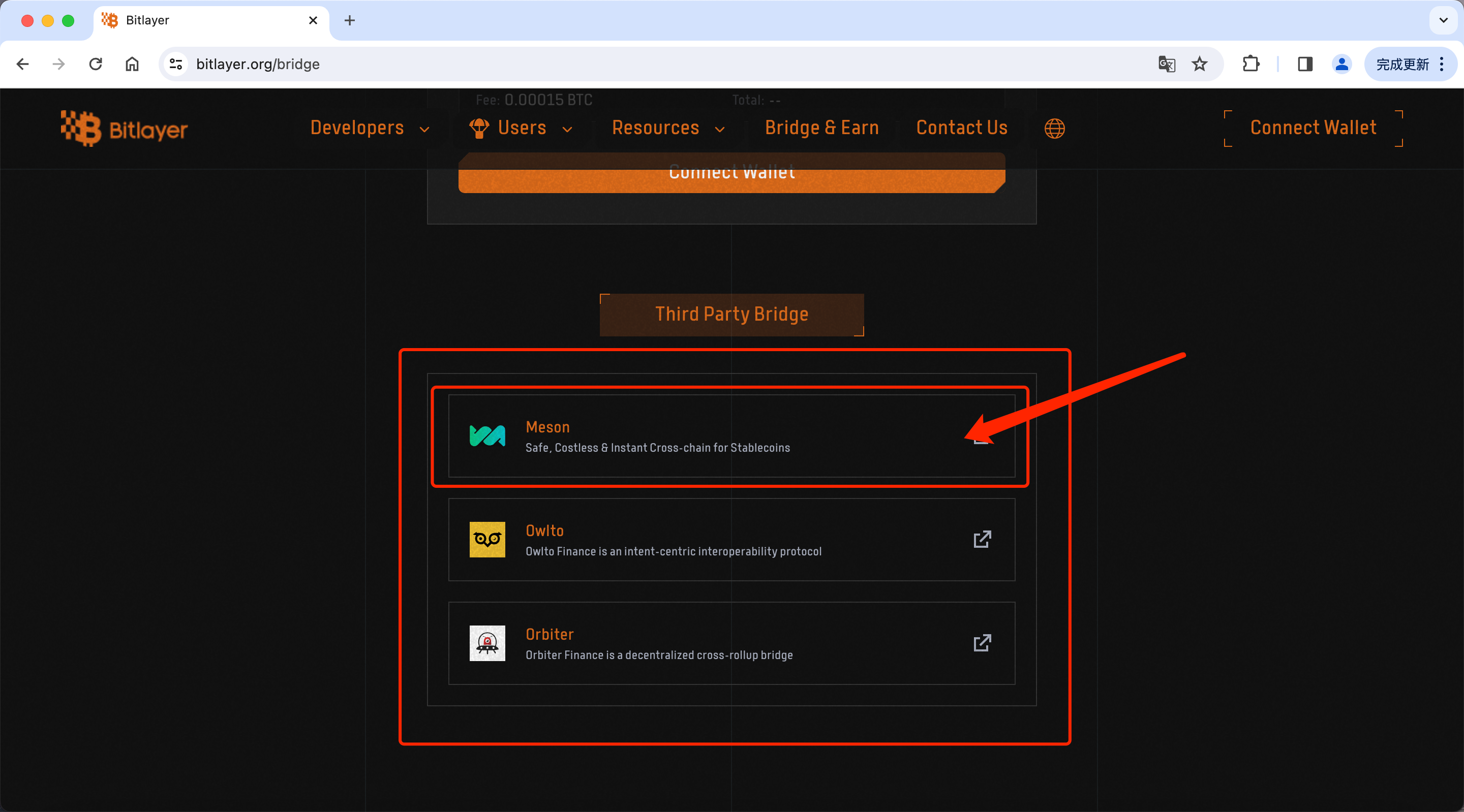 如何使用第三方桥将USDT、USDC和ETH跨入Bitlayer(Meson版)(ETH链)