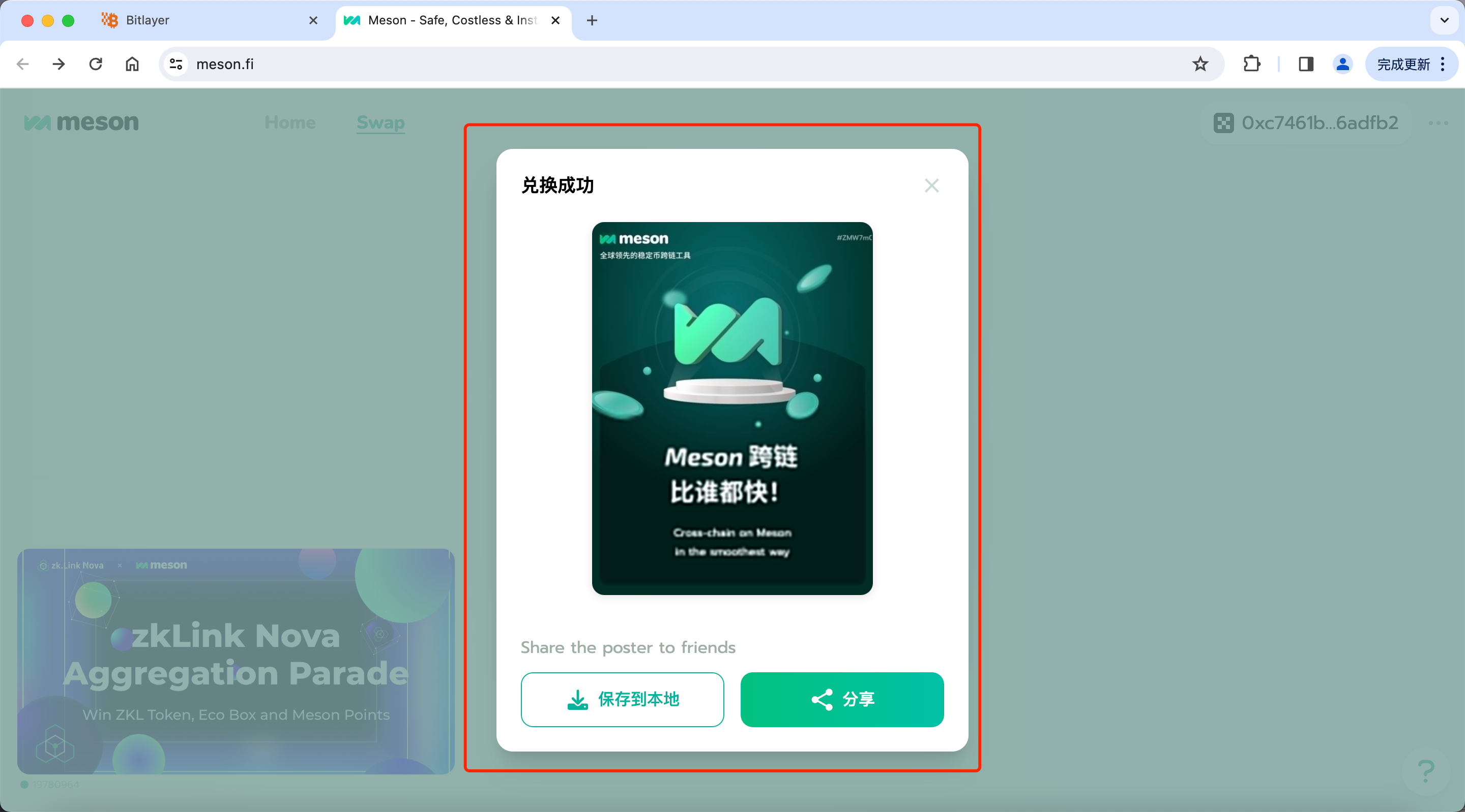 Meson 桥对于 Bitlayer 网络跨入和跨出都没有最小额限制,足够支付最低 Fee 即可