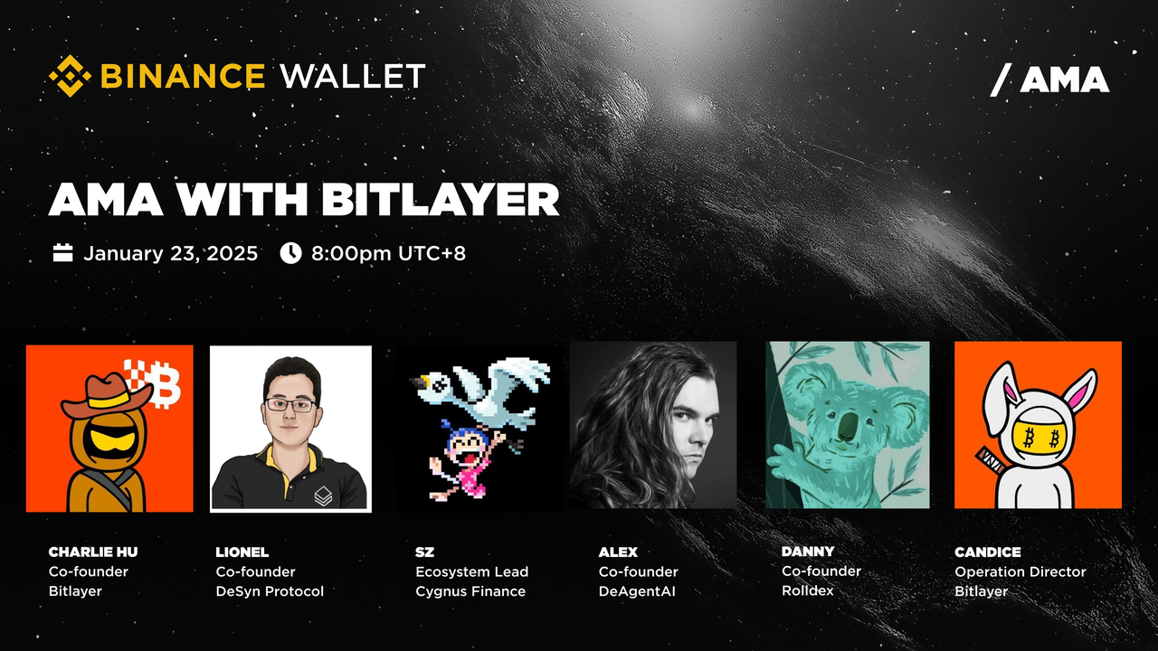 Bitlayer and Binance Wallet co-hosted an AMA themed BTCFi Carnival, featuring special guests from DeSyn Protocol, Cygnus Finance, DeAgentAI, and RollDex.
